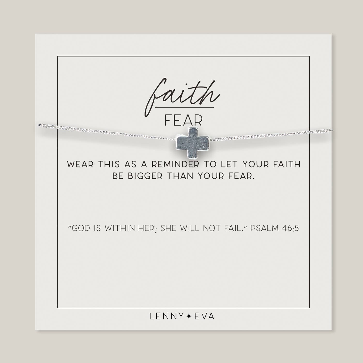 Choose faith over fear. This collection is designed to serve as a little reminder to trust our instincts, follow our hearts, and always believe in the power of faith and hope. The dainty gold or silver plate necklace is adjustable and features a tiny cross. It is presented on a thoughtful story card, perfect for gifting.