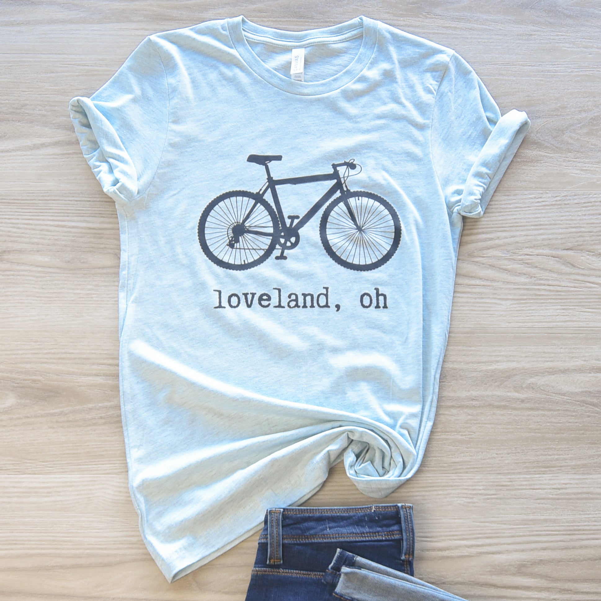 Loveland Ohio Vintage Bike T-Shirt on Heathered Pale Blue