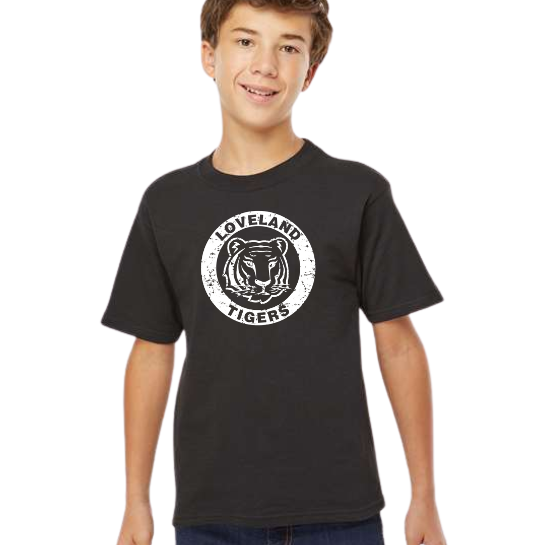 Loveland Tigers Vintage Circle Short Sleeve T-Shirt on Black-YOUTH
