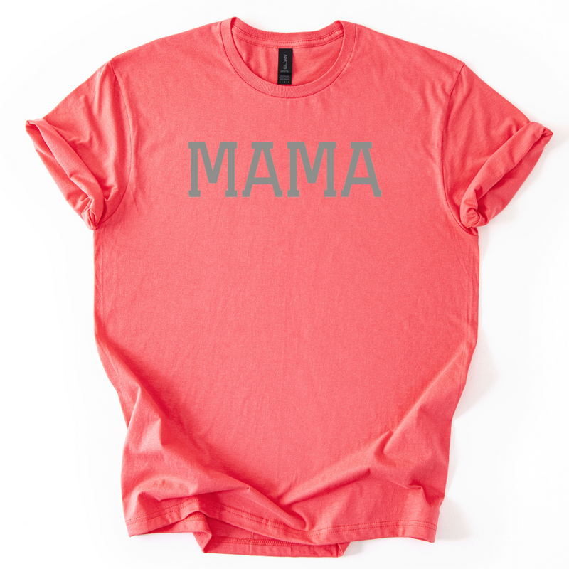 Silver Shimmer Mama T-Shirt on Coral Silk
