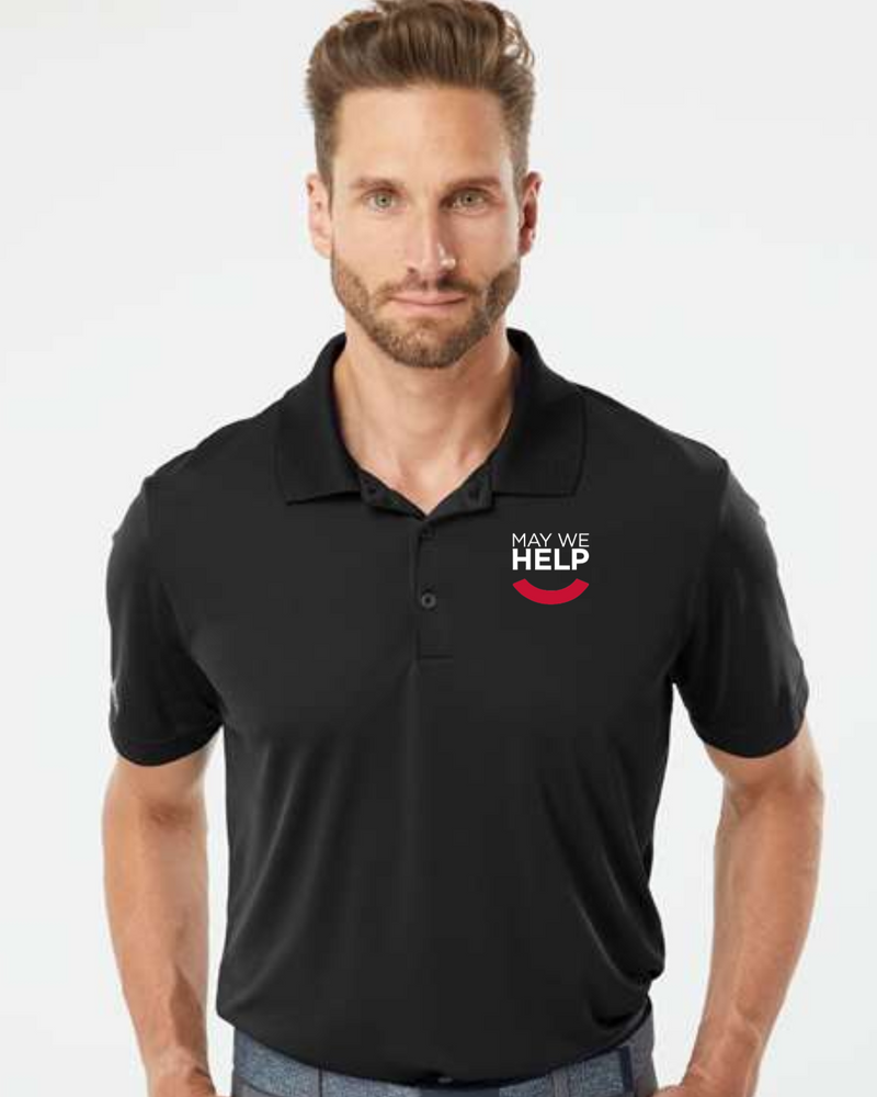 May We Help (Red/White) on Men's Adidas Performance Polo