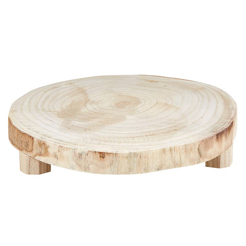 Our paulownia wood comes etched with beautiful designs in our new risers. Place as centerpiece or with added décor for a bohemian look. Paulownia wood: 12" dia.