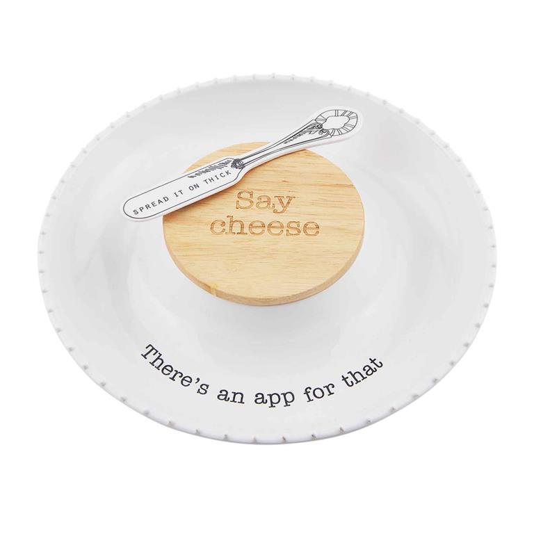 2-piece set. Beaded melamine chip server features integral center dip bowl with engraved removable lid. Comes with melamine spreader.