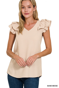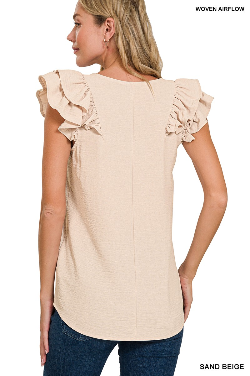 WOVEN AIRFLOW TIERED RUFFLE SLEEVE TOP - TIERED RUFFLE SLEEVE