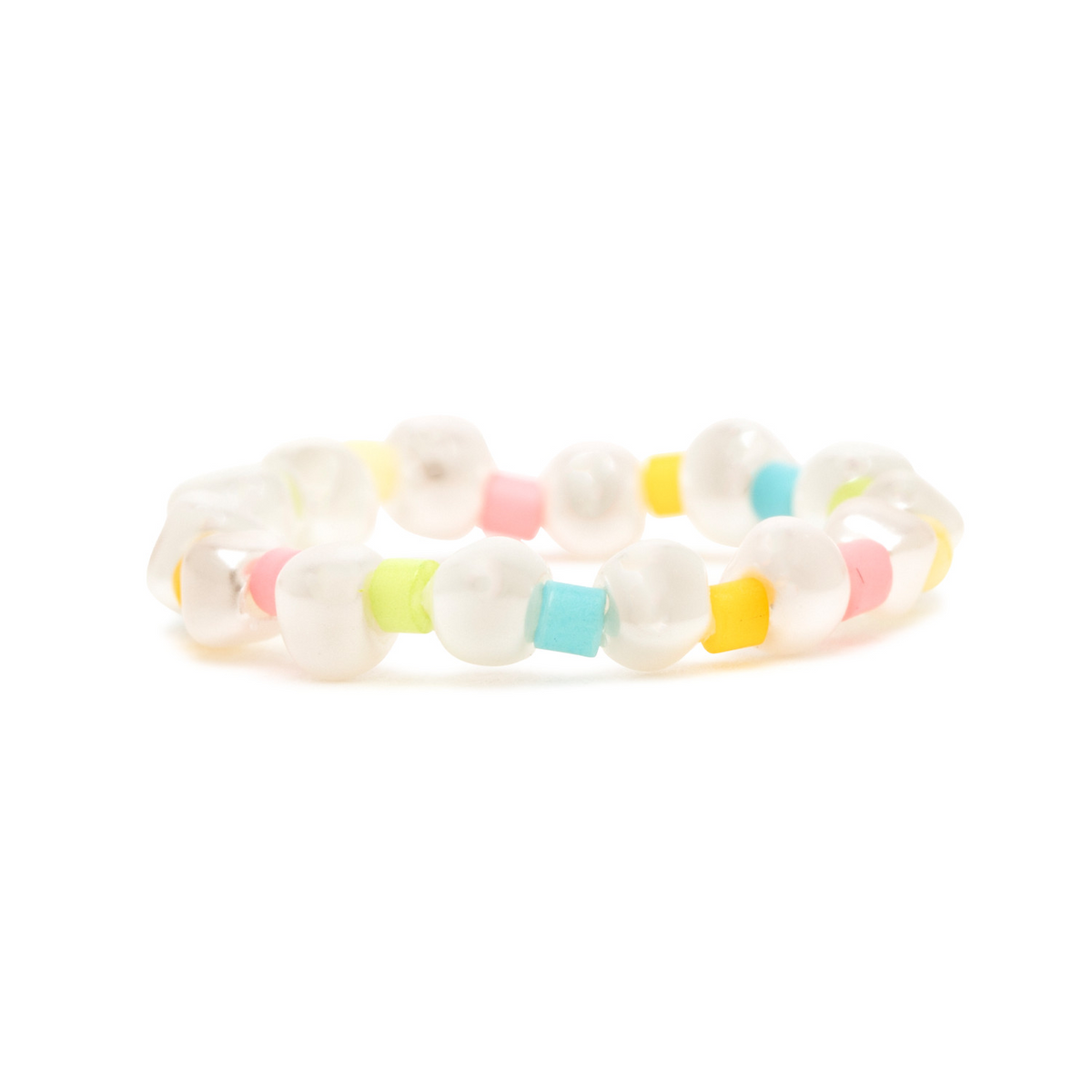 Slip on some fun with the Rainbow Reef Pearl Stretch Ring. Its stretchy design makes it super comfy, while the vibrant beads add a pop of color to any outfit. Perfect for stacking or wearing solo!