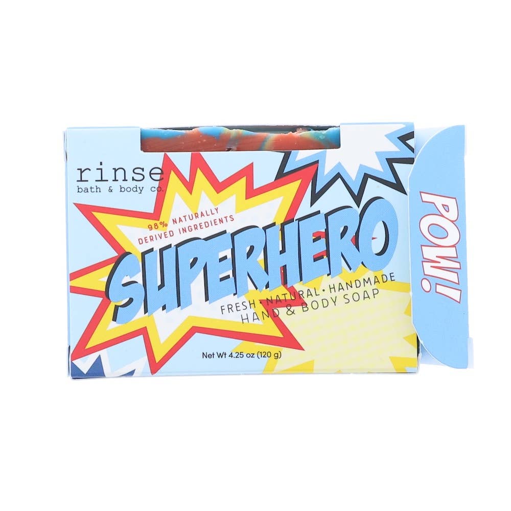 Our NEW Superhero Soap is making its debut. It is finally taking off the disguise and revealing itself to the world. The Superhero of the soap world that we have all been waiting for. It's so SUPER in fact that it doesn't even need a cape to prove it. It fights crime and grime while being full of fun colors and smelling like a perfect bowl of fruity cereal (pebble form of course). Still our natural soap recipe, so no worries about kryptonite here. This soap is the perfect sidekick to everyone's shower. And its super power? Making you and me SUPER squeaky clean.