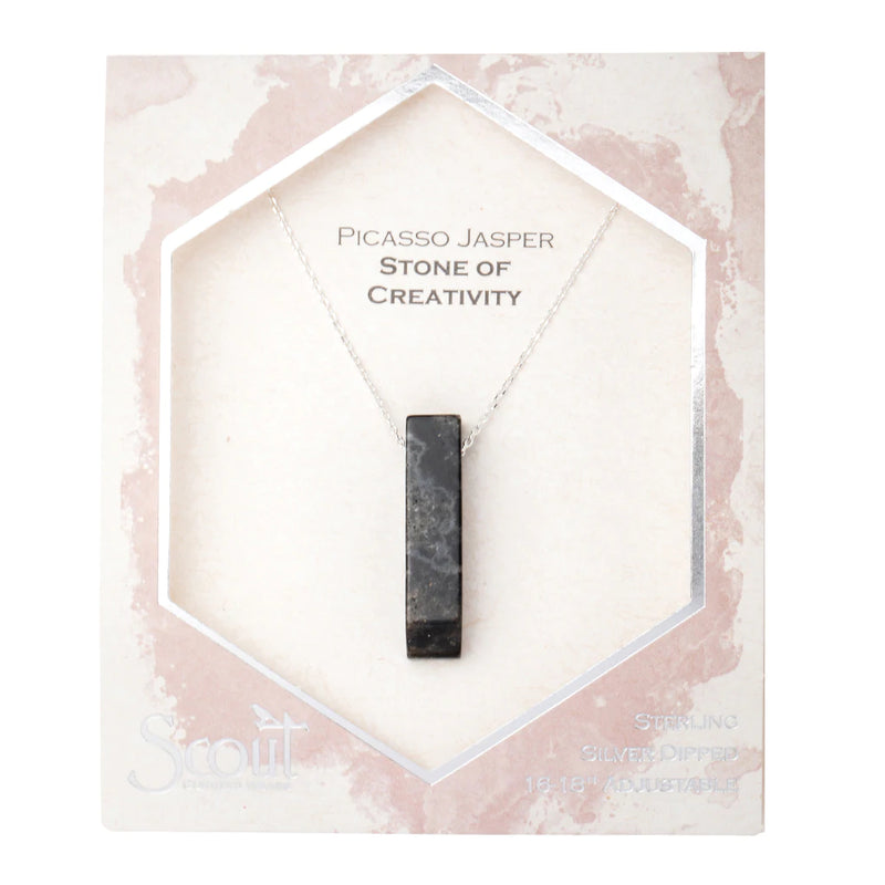 - Materials: Semi precious organically cut gemstones. 20 inch adjustable chain, Sterling Silver dipped.